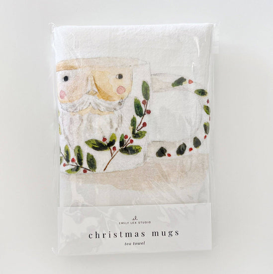 Add a touch of Christmas cheer to your kitchen with this 100% cotton tea towel. Festive mugs cover the towel making it perfect for gifting, washing up, wrapping up treats, or displaying in your kitchen for a splash of color.